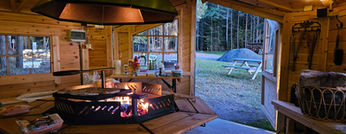 Tipp 1: Es muss wirklich nicht schlechtes Wetter sein, um die Hütte zu mieten; mit den großen Türen offen kommt der Sonnenuntergang hinein und Sie schaffen sich Ihren eigenen einzigartigen Ort, um gemeinsam Ihren Urlaub zu feiern :)